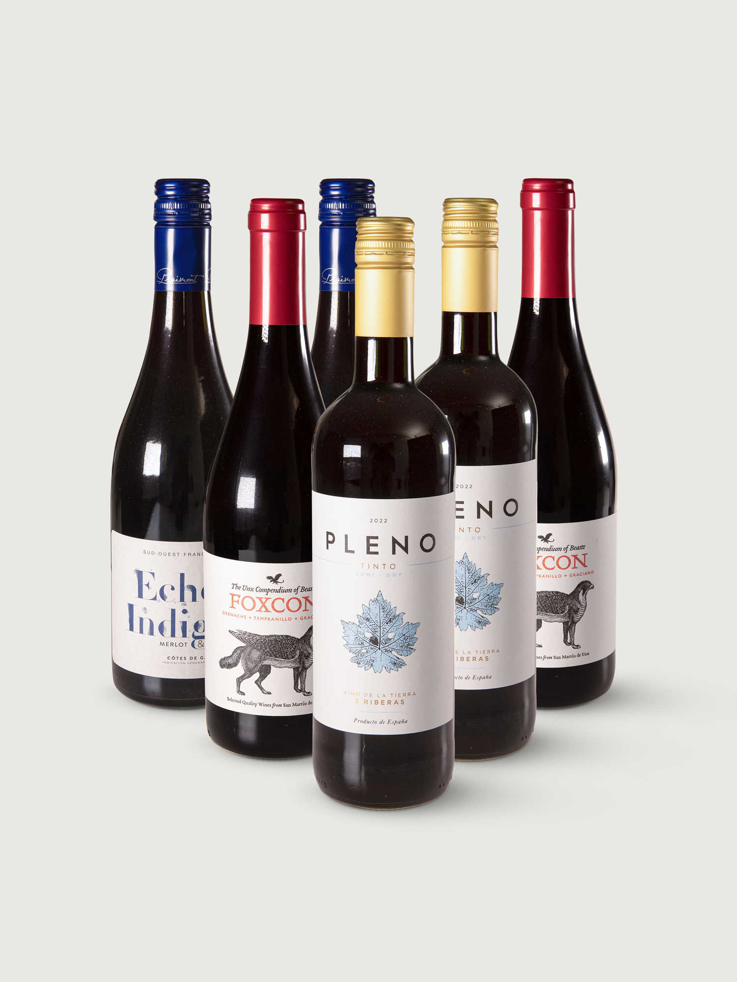 Sechs sorgfältig ausgewählte Rotweine, die Momente intensiver Ruhe, Genuss und Tiefe begleiten.